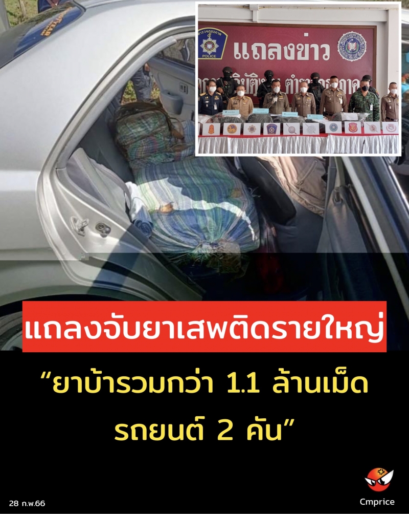 จับยาเสพติดรายใหญ่ “ยาบ้ารวมกว่า 1.1 ล้านเม็ด รถยนต์ 2 คัน”