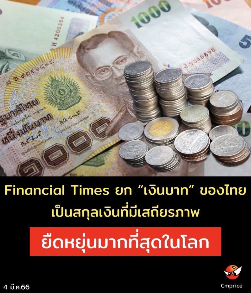 | • Financial Times ยกให้ เงินบาท ของไทย เป็นสกุลเงินที่มีความยืดหยุ่นมากที่สุดในโลก และมีเสถียรภาพ |