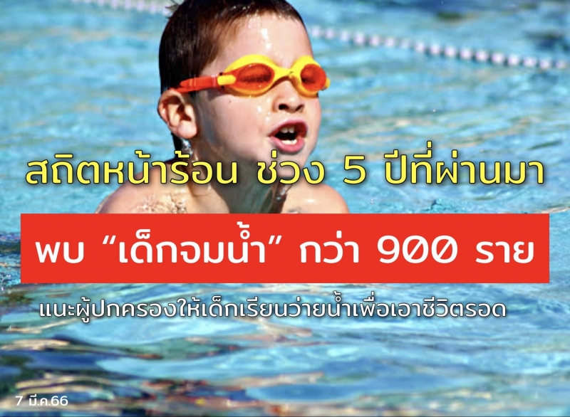 | • เปิดสถิตหน้าร้อน ช่วง 5 ปีที่ผ่านมาพบ เด็กจมน้ำ กว่า 900 ราย แนะผู้ปกครองสนับสนุนให้เด็กเรียนว่ายน้ำเพื่อเอาชีวิตรอด |