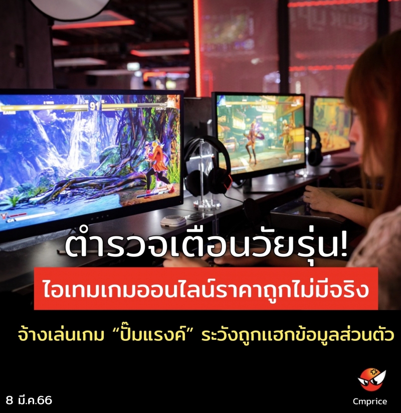 สำนักงานตำรวจแห่งชาติ โดย #กองบัญชาการตำรวจสืบสวนสอบสวนอาชญากรรมทางเทคโนโลยี (บช.สอท.) เตือนภัยวัยรุ่น การซื้อไอเทมเกมออนไลน์ในราคาถูกเกินจริง หลังมีผู้เสียหายหลายรายถูกหลอกขายไอเทมเกมหรือสกุลเงินใน #เกมออนไลน์ ผ่านเพจในเฟซบุ๊ก โดยเสนอขายราคาถูกกว่าบริษัทผู้ผลิตเกม เช่น สกุลเงินในเกม 1 แพ็ก มี7,200 เหรียญ ราคา 3,700 บาท แต่หลอกขายในราคาเพียง 2,050 บาท เมื่อผู้เสียหายโอนเงินแล้ว ได้รับสกุลเงินในเกมจริง แต่ต่อมาบริษัทผู้ผลิตเกมยกเลิกการซื้อดังกล่าว เนื่องจากตรวจพบธุรกรรมที่เป็นการฉ้อโกง ทำให้ผู้ซื้อต้องสูญเงินในการซื้อไอเทมเกมทั้งหมด นอกจากนี้ มิจฉาชีพยังมีการหลอกลวงเยาวชนจ้างให้เล่นเกม หรือที่เรียกว่า “ปั๊มแรงค์” จะถูกหลอกเอาข้อมูลส่วนบุคคล ข้อมูลทางการเงินไปใช้ประโยชน์ในทางมิชอบ เช่น นำไปเปิดบัญชีธนาคารไปแฮกบัญชีสื่อสังคมออนไลน์ เป็นต้น