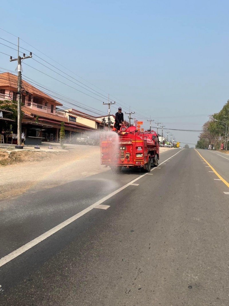 •ที่อำเภอแม่แตง หลายพื้นที่ได้นำรถบรรทุกนํ้าพร้อมเจ้าหน้าที่ ออกฉีดพ่นละอองนํ้า ตามเส้นทางถนนสายหลัก พร้อมรดนํ้าต้นไม้ เพื่อเพิ่มความชุ่มชื้นและลดฝุ่นละออง PM2.5 ในอากาศ