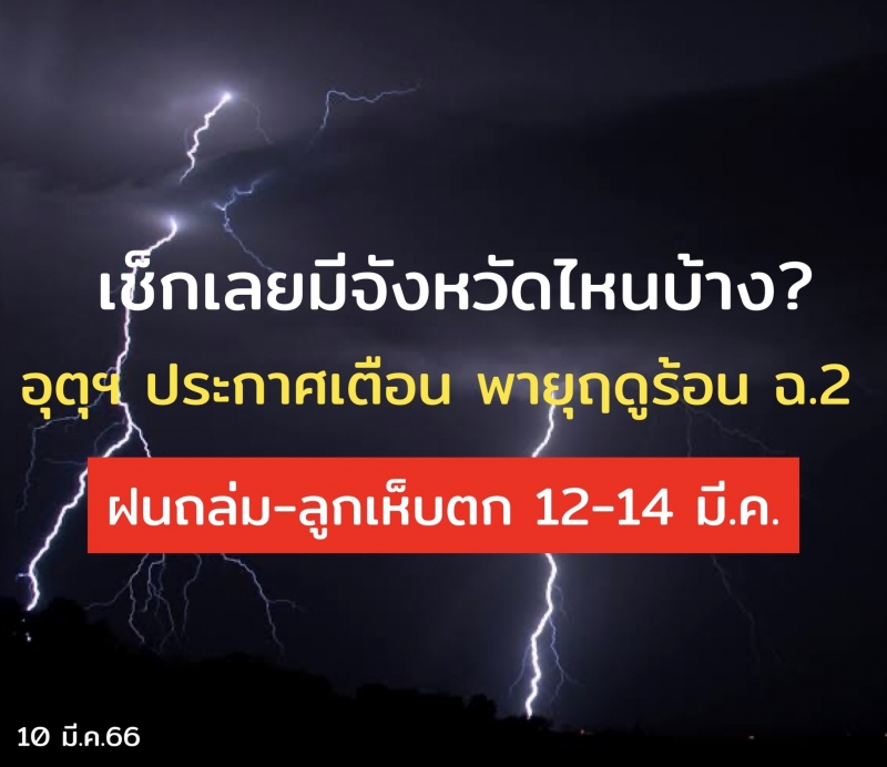ประกาศกรมอุตุนิยมวิทยาเรื่อง พายุฤดูร้อนบริเวณประเทศไทยฉบับที่ 2 มีผลกระทบในช่วงวันที่ 12-14 มีนาคม2566 ความว่า