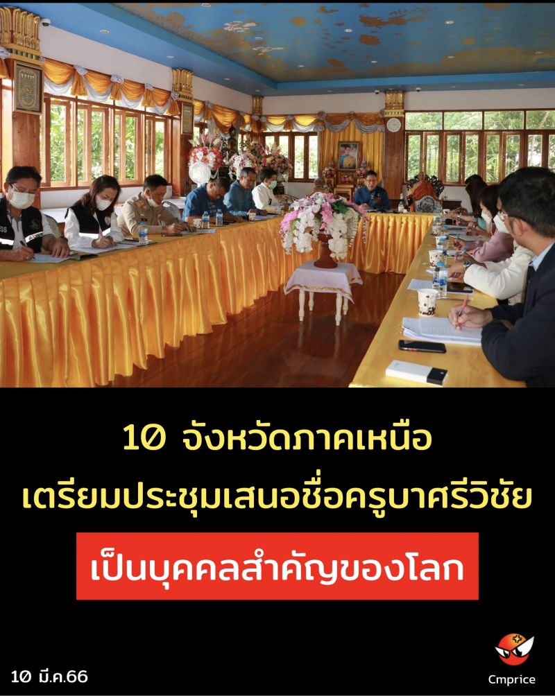 เมื่อบ่ายวันนี้ (9 มี.ค. 66) ที่วัดพระธาตุดอยสุเทพราชวรวิหาร จังหวัดเชียงใหม่ นายนิรัตน์ พงษ์สิทธิถาวร ผู้ว่าราชการจังหวัดเชียงใหม่ มอบหมายให้ นายวรวิทย์ ชัยสวัสดิ์ รองผู้ว่าราชการจังหวัดเชียงใหม่ เป็นประธานการประชุม เตรียมความพร้อมการจัดประชุมรับฟังข้อเสนอการสนับสนุนแผนแม่บทโครงการเสนอชื่อครูบาศรีวิชัยเป็นบุคคลสำคัญของโลก สาขาสันติภาพ ในวาระครบ 150 ปีชาตกาลครูบาศรีวิชัย ในวันศุกร์ ที่ 17 มีนาคม นี้ ณ วัดพระธาตุดอยสุเทพราชวรวิหาร จังหวัดเชียงใหม่ โดยจะมีฝ่ายคณะสงฆ์ และศรัทธาประชาชน จาก 10 จังหวัดภาคเหนือเข้าร่วมแสดงความคิดเห็น