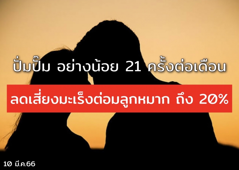 จะอย่างไรก็แล้วแต่ 21 ครั้งต่อเดือน เท่ากับมากกว่า 5 ครั้งต่ออาทิตย์ จัดเวลาให้ดีนะครับ อาจจะเสียชีวิตซะก่อน เกิดมะเร็งต่อมลูกหมาก