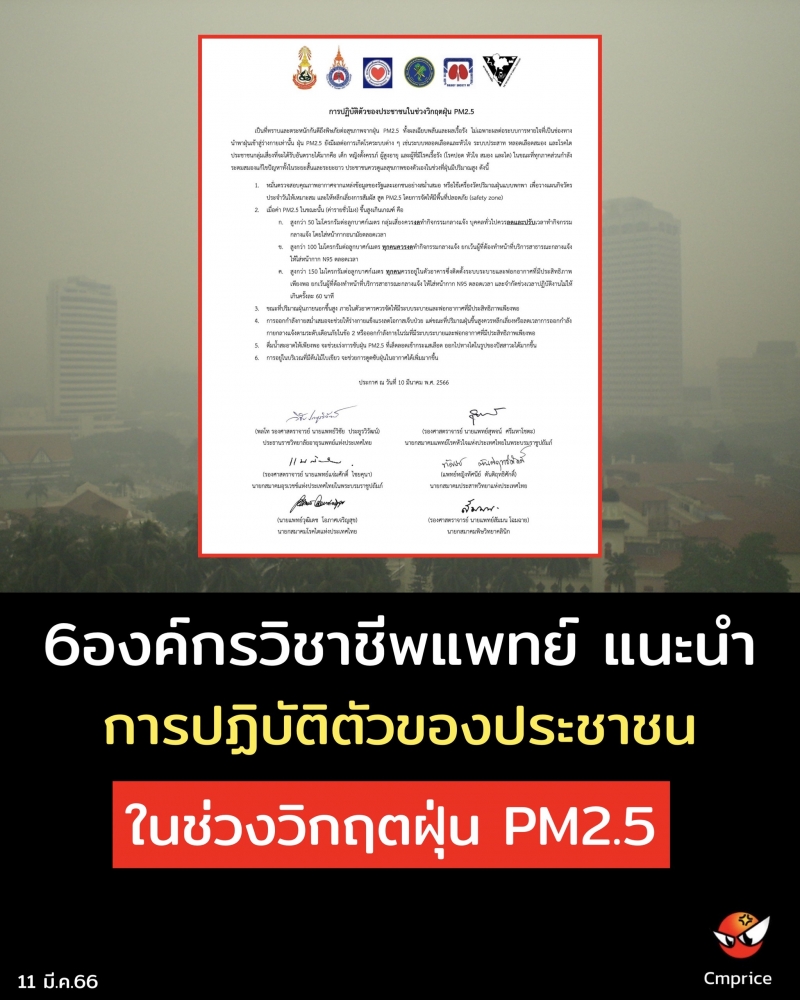| • 6องค์กรวิชาชีพแพทย์ แนะนำ การปฏิบัติตัวของประชาชนในช่วงวิกฤตฝุ่น PM2.5 |