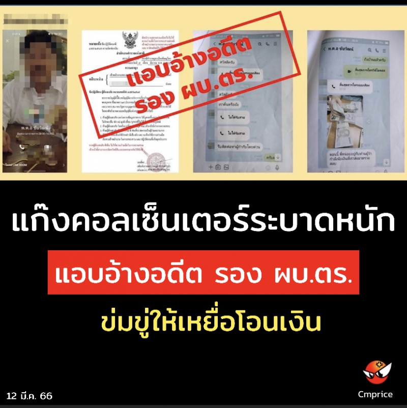 ที่ผ่านมาพนักงานสอบสวน บช.สอท. ได้รับแจ้งความร้องทุกข์จากผู้เสียหายหลายรายว่าถูกมิจฉาชีพแก๊งคอลเซ็นเตอร์แอบอ้างเป็นพนักงานธนาคารแห่งหนึ่ง สร้างความน่าเชื่อถือโดยการแจ้งชื่อนามสกุล และหมายเลขพนักงานให้ผู้เสียหายทราบ แล้วแจ้งผู้เสียหายว่ามีส่วนเกี่ยวข้องกับการฟอกเงิน เนื่องจากผู้เสียหายได้ใช้บัตรเครดิตธนาคารดังกล่าวที่ห้างสรรพสินค้าแห่งหนึ่งในจังหวัดพิษณุโลก เป็นจำนวนเงิน 50,000 บาท จากนั้นได้โอนสายต่อไปยังมิจฉาชีพอีกรายอ้างเป็นเจ้าหน้าที่ตำรวจ สังกัด สภ.เมืองพิษณุโลก ให้ผู้เสียหายแอดไลน์บัญชีไลน์ตำรวจปลอม ข่มขู่ว่าผู้เสียหายว่าจะต้องถูกดำเนินคดีตามกฎหมาย ให้โอนเงินที่มีในอยู่บัญชีมาให้สำนักงานป้องกันและปราบปรามการฟอกเงิน (ปปง.) ตรวจสอบเส้นทางการเงิน รวมถึงมีการส่งเอกสาราชการปลอมให้ผู้เสียหายตรวจสอบ มีการสร้างสภาพแวดล้อมให้ผู้เสียหายได้ยินเสียงว่ามิจฉาชีพอยู่ที่สถานีตำรวจจริง ผู้เสียหายหลงเชื่อจึงโอนเงินไปยังบัญชีธนาคารที่มิจฉาชีพเตรียมไว้ ต่อมาแก๊งคอลเซ็นเตอร์ได้ข่มขู่ผู้เสียหายอีกว่าจะต้องถูกดำเนินดดี และต้องถูกฝากขัง90 วัน แต่ผู้กำกับการ สภ.เมืองพิษณุโลก สามารถช่วยเหลือไม่ให้ไม่ถูกดำเนินคดีได้ แนะนำให้แอดไลน์ไปพูดคุยขอความช่วยเหลือ ผู้เสียหายหลงเชื่อจึงได้แอดไลน์บัญชีตำรวจปลอมดังกล่าว ภายหลังทราบว่ารูปภาพโปรไฟล์ และชื่อบัญชีไลน์ดังกล่าว เป็นรูปและชื่อของอดีตข้าราชการตำรวจชั้นผู้ใหญ่ ระดับรอง ผบ.ตร. ซึ่งในระหว่างที่พูดคุยกันนั้นมิจฉาชีพเพิ่มความน่าเชื่อถือโดยการไลน์วิดีโอคอลมายังผู้เสียหาย และทำการส่งภาพว่ากำลังตรวจสอบเงินที่ผู้เสียหายโอนมาให้ตรวจสอบ มิจฉาชีพข่มขู่เหยื่ออีกว่าต้องโอนเงินมาประกันตัว ให้รายงานตัวทุกๆ 2 ชม. อ้างว่ามีระบบติดตามตัว ห้ามหลบหนี ผู้เสียหายเกิดความกลัวจึงโอนเงินไปให้มิจฉาชีพได้รับความเสียหายจำนวนมาก