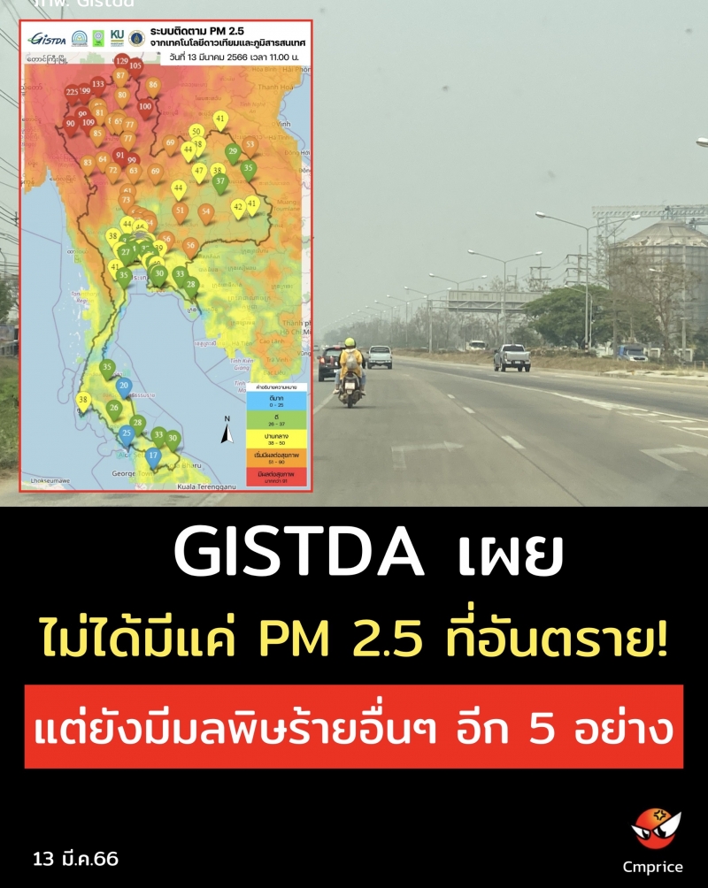 | • GISTDA เผยไม่ได้มีแค่ PM 2.5 ที่อันตราย! แต่ยังมีมลพิษร้ายอื่นๆ อีก 5 อย่าง |