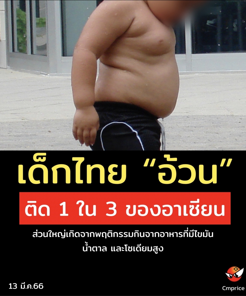 กรมอนามัย เผย ข้อมูลพบ เด็กไทยมีภาวะน้ำหนักเกินและอ้วน ติด 1 ใน 3 ของอาเซียน ซึ่งสหพันธ์โรคอ้วน (World Obesity Federation) คาดการณ์ภายในปี 2573 ประชากรอายุต่ำกว่า 20 ปี จะมีภาวะน้ำหนักเกินและอ้วนสูงขึ้นอีกเกือบร้อยละ 50 นายกฯ ห่วงเด็ก ๆ ขอให้พ่อแม่ ผู้ปกครอง ช่วยดูแลสุขภาพของลูกหลาน ให้รับประทานอาหารถูกหลักโภชนาการ เสริมการออกกำลังกายเพื่อป้องกันภาวะอ้วนโดยเฉพาะในช่วงปิดภาคเรียนนี้