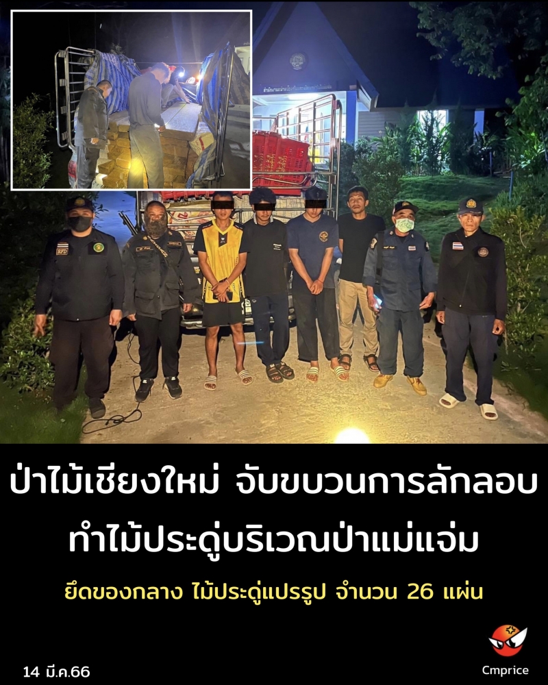 ตามที่ผู้หวังดีไม่ประสงค์ออกนามเพื่อหวังเงินรางวัลนำจับ แจ้งว่ามีขบวนการลักลอบทำไม้ประดู่บริเวณป่าดังกล่าวคณะเจ้าหน้าที่ได้ตรวจพบการกระทำความผิด 1 ราย ผู้กระทำความผิด 3 คน ของกลาง ไม้ประดู่แปรรูป จำนวน 26 แผ่น/เหลี่ยม ปริมาตร 1.757 ลบ.ม. เเละอุปกรณ์กระทำความผิด 4 รายการ ได้แก่ รถกระบะบรรทุก ยี่ห้อ TOYOTA HILUX REVO สี เทา 1 คัน , ผ้าใบพลาสติก 1 ผืน , กระสอบแกลบ 10 กระสอบ , ตะกล้าหูเหล็ก 20 ใบ ได้นำเรื่องราวร้องทุกข์ต่อ สภ.เเม่เเจ่ม ตาม ปจว.ข้อที่ 1 เวลา 04.45 น. คดีอาญาที่ 53/2566 ยึดทรัยพ์ที่ 35/2566 ลงวันที่ 12 มีนาคม 2566 เพื่อสืบสวนสอบสวนผู้กระทำความผิด เเละขยายผลเครือข่ายขบวนการค้าไม้แปรรูปผิดกฎหมาย มาดำเนินการคดีต่อไป