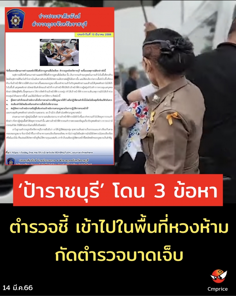 14 มี ค.66 ตำรวจภูธรจังหวัดราชบุรี ออกประกาศข้อชี้แจงกรณีตามภาพข่าวและคลิปวีดีโอที่ปรากฏตามสื่อโชเชียลตำรวจฎธรจังหวัดราชบุรี ขอชี้แจงเหตุการณ์ดังกล่าวดังนี้