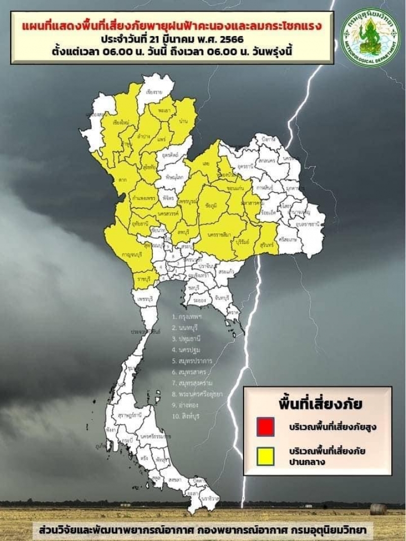 21 มีนาคม 2566 กรมอุตุนิยมวิทยา เตือน"พายุฤดูร้อน" พยากรณ์อากาศ 24 ชั่วโมงข้างหน้า