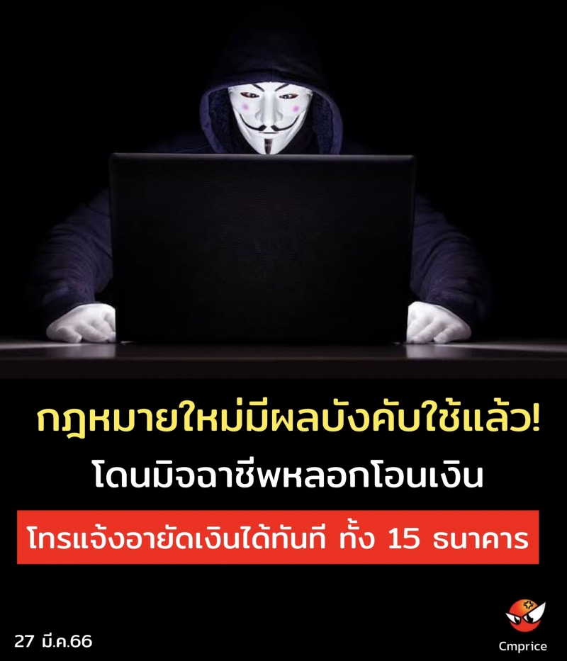 พล.ต.ท.สมพงษ์ ชิงดวง ผู้ช่วยผู้บัญชาการตำรวจแห่งชาติ (ผู้ช่วย ผบ.ตร.) ในฐานะหัวหน้างานบริหารฝ่ายประชาสัมพันธ์ศูนย์ปราบปรามอาชญากรรมทางเทคโนโลยีสารสนเทศ (ศปอส.ตร.) เปิดเผยว่า ปัจจุบันได้มีกฎหมายใหม่ออกมาเป็นประโยชน์ต่อประชาชน ช่วยเหลือในการถูกโกงถูกหลอกลวงของเหล่ามิจฉาชีพ