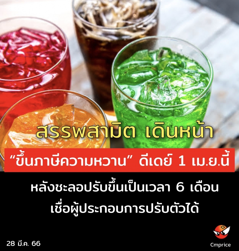 กรมสรรพสารมิตประกาศ “ขึ้นภาษีความหวาน” ภาษีน้ำตาล 2566 ตามที่กฎหมายกำหนดเป็นขั้นบันได ดีเดย์ 1 เม.ย.นี้ หลังยืดเวลามา 6 เดือน