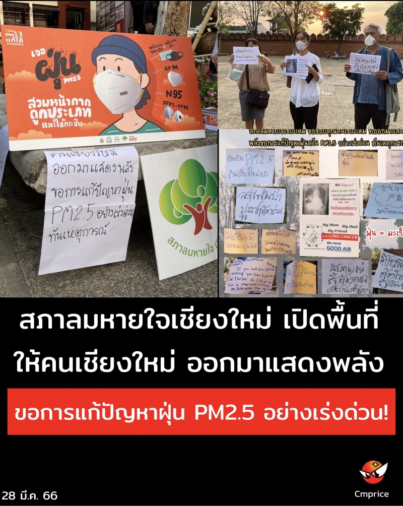 | • สภาลมหายใจเชียงใหม่ เปิดพื้นที่ให้คนเชียงใหม่ ออกมาแสดงพลังขอการแก้ปัญหาฝุ่น PM2.5 อย่างเร่งด่วน |