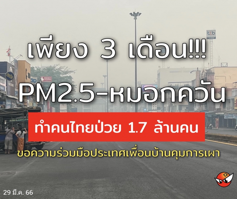 นพ.โอภาส การย์กวินพงศ์ ปลัดกระทรวงสาธารณสุข (สธ.) กล่าวถึงกรณีหมอกควันและฝุ่นละอองขนาดเล็ก PM2.5 ของประเทศไทย ที่สูงเกินค่ามาตรฐานในระดับที่มีผลกระทบต่อสุขภาพว่า ข้อมูลเฝ้าระวังโรคที่เกี่ยวข้องกับมลพิษทางอากาศ ระหว่างวันที่ 1 มกราคม-19 มีนาคมที่ผ่านมา พบผู้ป่วยด้วยโรคที่เกี่ยวข้องกับมลพิษทางอากาศ รวม1,730,976 ราย สัปดาห์นี้เพิ่มขึ้นจากสัปดาห์ที่ผ่านมา 228,870 ราย กลุ่มโรคที่พบสูงสุด ได้แก่ กลุ่มโรคทางเดินหายใจ กลุ่มโรคผิวหนังอักเสบ และกลุ่มโรคตาอักเสบ