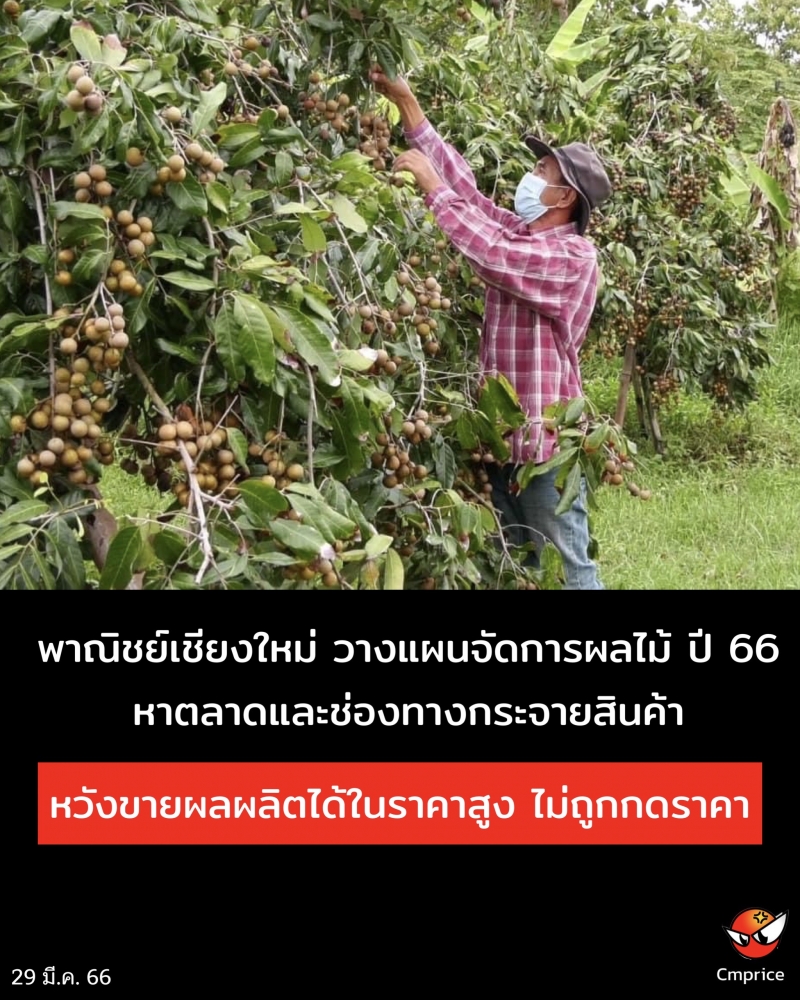 สำนักงานพาณิชย์จังหวัดเชียงใหม่ วางมาตรการบริหารจัดการผลไม้ ปี 66 ด้านผู้ว่าราชการจังหวัดเชียงใหม่ สั่งดูแลเชิงรุก หาตลาดและช่องทางกระจายสินค้า หวังให้เกษตรกรขายผลผลิตได้ในราคาสูง ไม่ถูกกดราคา