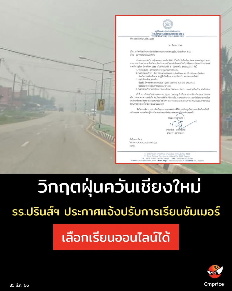 | • วิกฤตฝุ่นควันเชียงใหม่ รร.ปรินส์ฯ ประกาศแจ้งปรับการเรียนซัมเมอร์ เลือกวิธีเรียนออนไลน์ได้ |