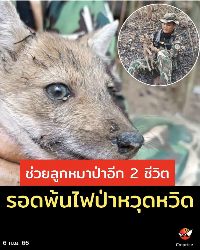 6 เม.ย.66 เพจอุทยานแห่งชาตินายูง -น้ำโสม โพสต์ภาพ พร้อมระบุข้อความว่า "เจ้าหน้าที่จุดสกัดคอนสาพบลูกหมาป่า ที่หนีตายจากไฟป่า จำนวน 2 ตัว น้องกำลังน่ารักมีแผลเกิดจากไฟไหม้ไม่มาก กำลังขดบริเวณป่าไฟไหม้ เจ้าหน้าที่จึงได้ทำการช่วยชีวิตไว้ในที่ปลอดภัยแล้ว จากนั้นเจ้าหน้าที่ได้รีบเข้าดับไฟป่าบริเวณดังกล่าวจนเพลิงสงบลงเหตุเกิดบริเวณท้องที่ ต.เชียงกลม อ.ปากชม จ.เลย