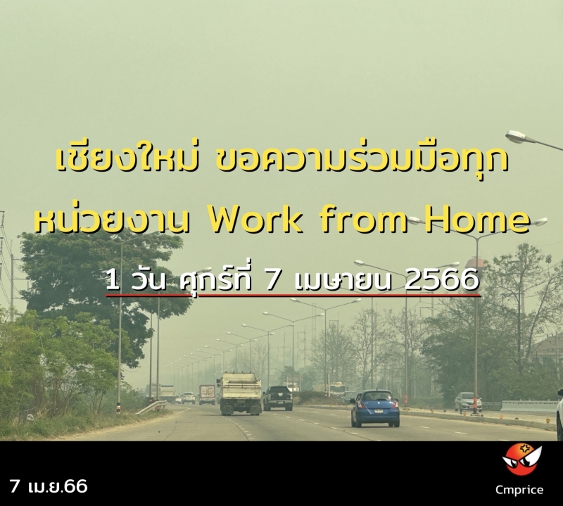 วันที่ 6 เมษายน 2566 นายนิรัตน์ พงษ์สิทธิถาวร ผู้ว่าราชการจังหวัดเชียงใหม่ ได้ออกประกาศจังหวัดเชียงใหม่ ให้หน่วยงานภาครัฐทุกแห่งจัดระบบการทำงานที่บ้าน (Work from Home) ในส่วนภารกิจที่ไม่ส่งผลกระทบต่อการบริการประชาชน เนื่องด้วยจังหวัดเชียงใหม่ มีสถานการณ์หมอกควันและฝุ่นละอองขนาดเล็ก (PM 2.5) ในพื้นที่ตลอด 24 ชั่วโมง ที่ผ่านมามีค่าเกินค่ามาตรฐาน (อยู่ระหว่าง 112-398 มคก/ลบ.ม) และมีแนวโน้มสูงขึ้นอย่างต่อเนื่อง อาจส่งผลกระทบต่อสุขภาพของประชาชน จึงได้ออกประกาศฉบับดังกล่าว เพื่อเป็นการป้องกันและลดผลกระทบต่อสุขภาพของประชาชน ในพื้นที่จังหวัดเชียงใหม่