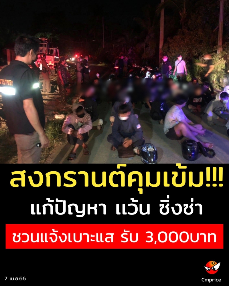 สงกรานต์คุมเข้ม แก้ปัญหา เเว้น ซิ่งซ่า ชวนแจ้งเบาะแสเเว้นแข่งรถในทางรับ 3,000บาท