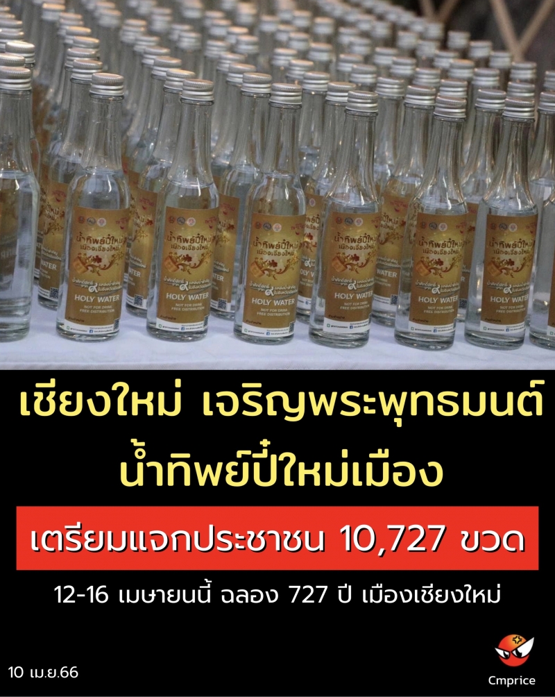 | • เชียงใหม่ เจริญพระพุทธมนต์น้ำทิพย์ปี๋ใหม่เมืองเตรียมแจกประชาชน 10,727 ขวด 12-16 เมษายนนี้ |