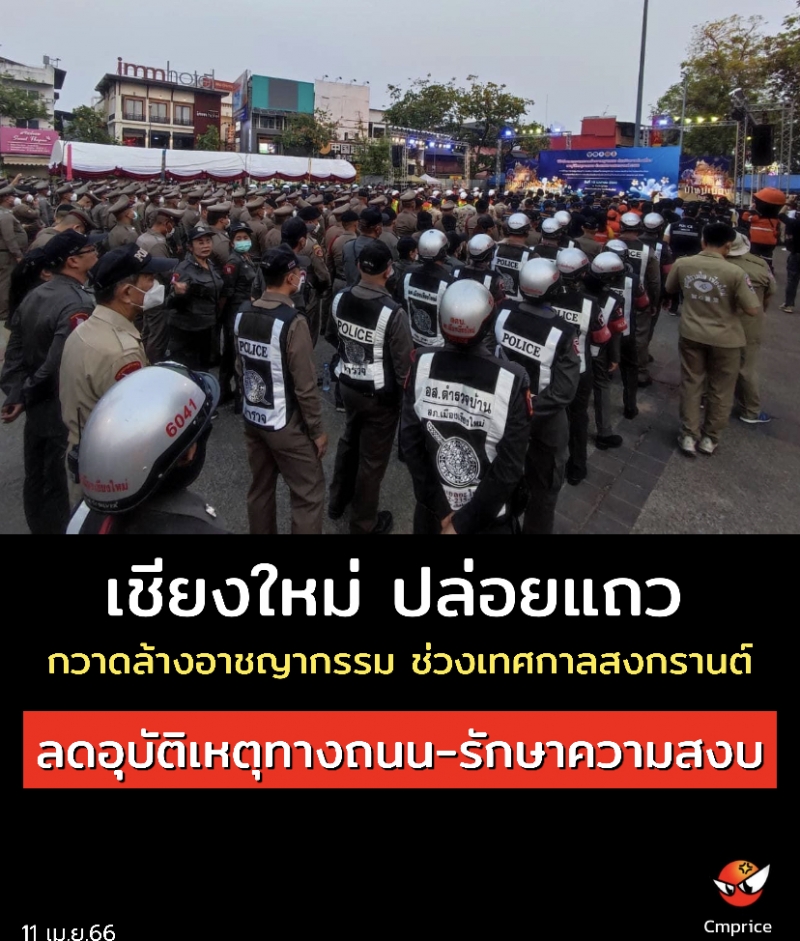 จังหวัดเชียงใหม่ ปล่อยแถวระดมกวาดล้างอาชญากรรม มุ่งลดอุบัติเหตุทางถนน และรักษาความสงบเรียบร้อยในช่วงเทศกาลสงกรานต์ ประจำปี 2566