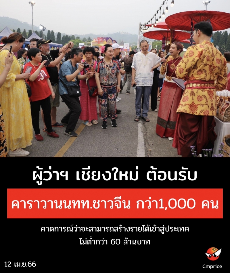 เย็นวันนี้ (12 เม.ย. 66) ที่ อุทยานหลวงราชพฤกษ์ จังหวัดเชียงใหม่ นายนิรัตน์ พงษ์สิทธิถาวร ผู้ว่าราชการจังหวัดเชียงใหม่ พร้อมด้วย นางกุสุมาล พงษ์สิทธิถาวร ผู้ว่าราชการจังหวัดเชียงใหม่ ร่วมกับ คณะผู้บริหารการท่องเที่ยวแห่งประเทศไทย (ททท.) และกงสุลใหญ่แห่งสาธารณรัฐประชาชนจีนประจำเชียงใหม่ ให้การต้อนรับนักท่องเที่ยวจากสาธารณรัฐประชาชนจีนกว่า 1,000 คน ซึ่งเดินทางเข้ามาท่องเที่ยวในประเทศไทยกับบริษัทนำเที่ยวภายในประเทศแบบคาราวานรถยนต์ กว่า 300 คัน ในช่วงเทศกาลสงกรานต์ ภายใต้กิจกรรม “Thailand we are coming”