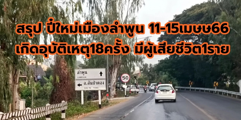11 -15 เมษายน 2566 ลำพูน เกิดอุบัติเหตุทางถนน 18 ครั้ง ทางจังหวัดยังคงเข้มงวดการบังคับใช้กฏหมาย และอำนวยความสะดวกประชาชนในการเดินทาง