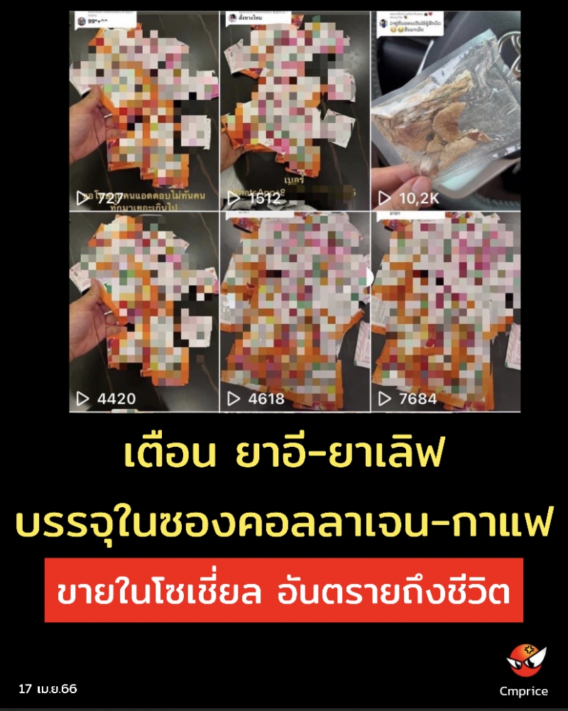 | • สบยช. เตือน ยาอี ยาเลิฟ เอ็คซ์ตาซี บรรจุในซองคอลลาเจน-กาแฟ ขายในโซเชี่ยล อันตรานถึงตายได้! |