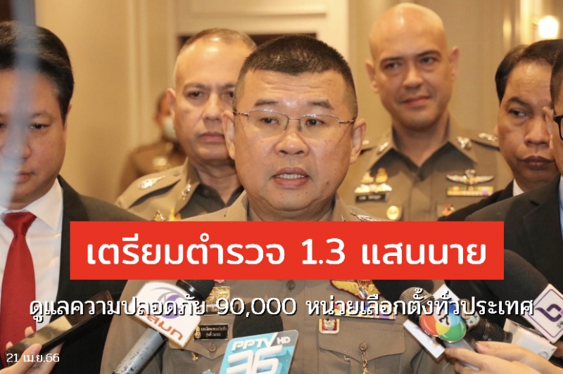| • เตรียมเจ้าหน้าที่ตำรวจ 1.3 แสนนาย ดูแลความปลอดภัย 90,000 หน่วยเลือกตั้งทั่วประเทศ |