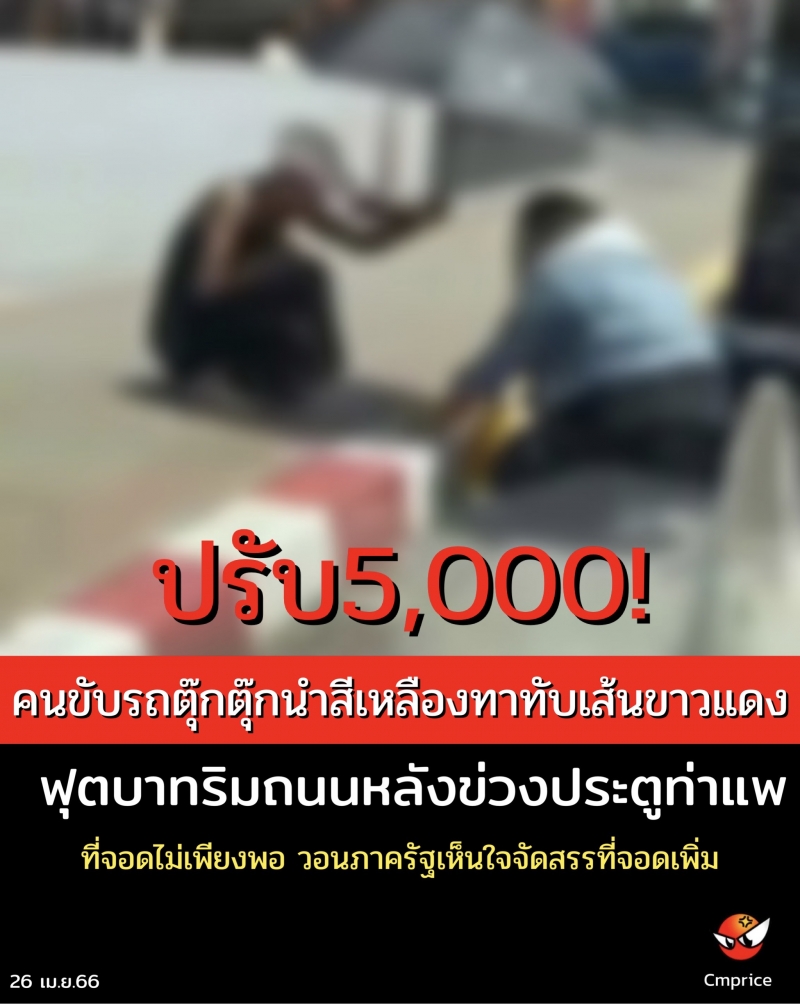 | • ปรับ5,000! คนขับรถตุ๊กตุ๊กนำสีเหลืองทาทับเส้นขาวแดงฟุตบาทริมถนนหลังข่วงประตูท่าแพ |