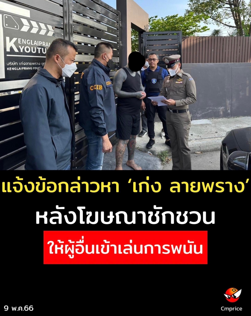 “ตร.ไซเบอร์” แจ้งข้อกล่าวหา ‘เก่ง ลายพราง’ หลังโฆษณาชักชวนให้ผู้อื่นเข้าเล่นการพนัน เข้าตรวจค้น 3 จุด ยึดของกลางหลายรายการ