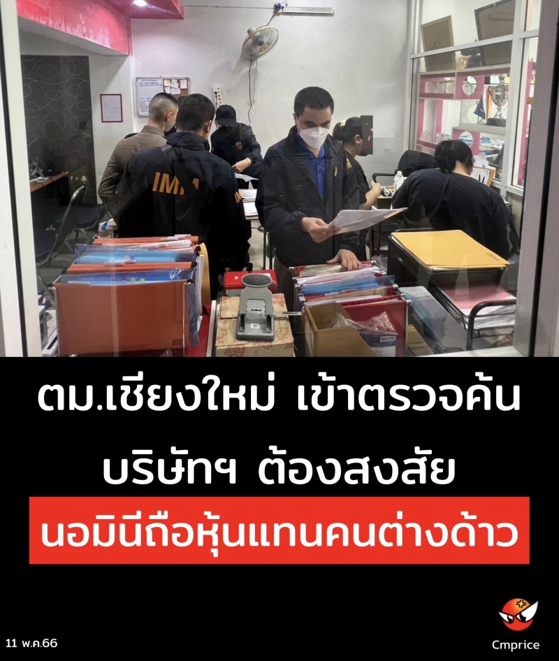 ตม.เชียงใหม่ ร่วมกับภาคี เข้าตรวจค้นบริษัทฯ ต้องสงสัยนอมินีถือหุ้นแทนคนต่างด้าว