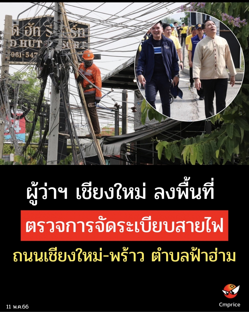 ผู้ว่าราชการจังหวัดเชียงใหม่ ลงพื้นที่ตรวจการจัดระเบียบสายไฟฟ้าสายสื่อสาร ถนนเชียงใหม่-พร้าว ตำบลฟ้าฮ่ามเพื่อความปลอดภัยของผู้ขับขี่และความสวยงามของจังหวัดเชียงใหม่