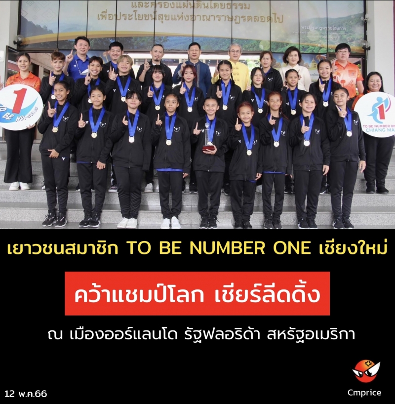 เยาวชนสมาชิก TO BE NUMBER ONE จังหวัดเชียงใหม่ คว้าแชมป์โลก การแข่งขันเชียร์ลีดดิ้ง ชิงแชมป์โลก 2023 ณ เมืองออร์แลนโด รัฐฟลอริด้า ประเทศสหรัฐอเมริกา