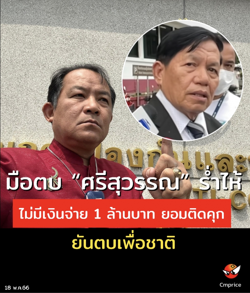 มือตบ “ศรีสุวรรณ” ร่ำไห้ ไม่มีเงินจ่าย 1 ล้านบาท ยอมติดคุก ยันตบเพื่อชาติ
