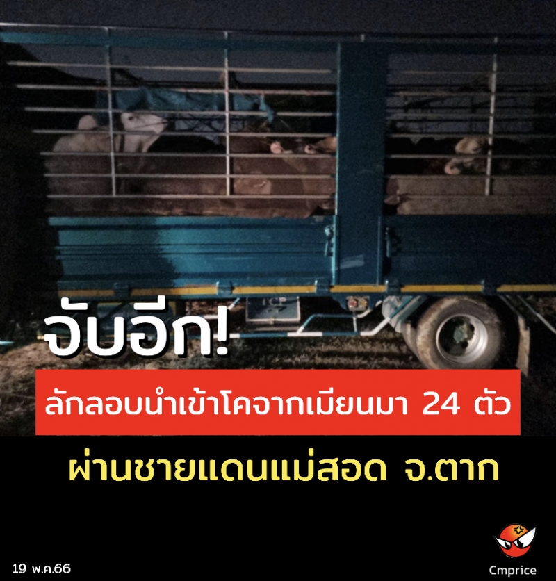 | • จับอีก! ลักลอบนำเข้าโคจากเมียนมา 24 ตัว ผ่านชายแดนแม่สอด |