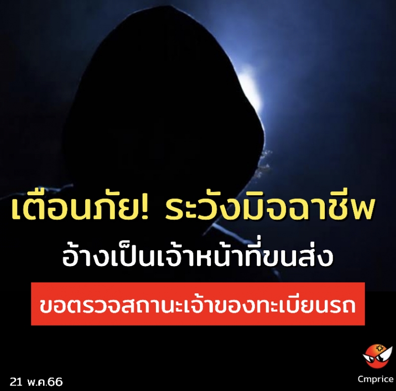 เตือนภัย! ระวังมิจฉาชีพ อ้างเป็นเจ้าหน้าที่ขนส่งขอตรวจสถานะเจ้าของทะเบียนรถ
