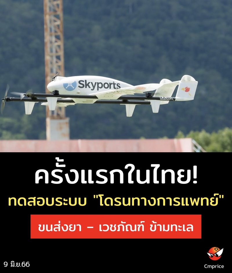 | • ครั้งแรกในไทย ทดสอบระบบ "โดรนทางการแพทย์" ขนส่งยา เวชภัณฑ์ ข้ามทะเล |