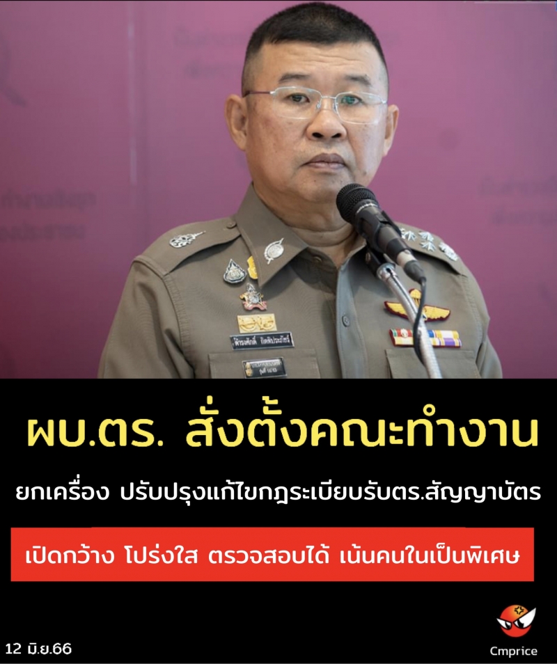 ผบ.ตร. สั่งตั้งคณะทำงาน เตรียมยกเครื่อง ปรับปรุงแก้ไขกฎระเบียบ การรับบุคคลเป็นตำรวจสัญญาบัตร ให้สอดคล้อง พ.ร.บ.ตำรวจใหม่ โดยจะเปิดกว้าง โปร่งใส ตรวจสอบได้ เน้นพิจารณาคนในเป็นพิเศษ เพื่อสร้างขวัญกำลังใจตำรวจ และความเชื่อมั่นประชาชน