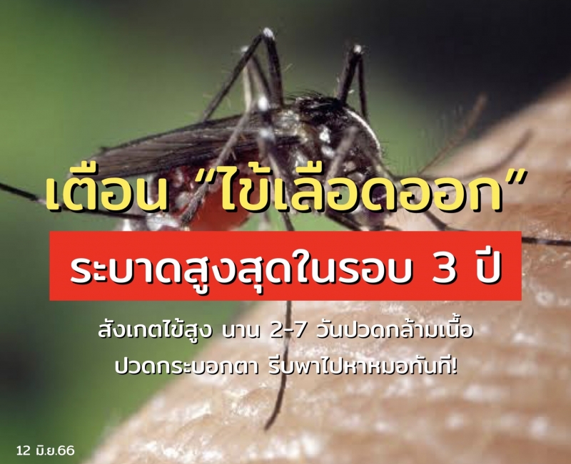 | • เตือน ไข้เลือดออก ระบาดสูงสุดในรอบ 3 ปี สังเกตไข้สูง นาน 2-7 วันปวดกล้ามเนื้อ ปวดกระบอกตา รีบพาไปหาหมอทันที |