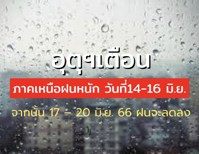 อุตุฯเตือน ภาคเหนือฝนหนัก วันที่14-16 จากนั้น 17 – 20 มิ.ย. 66 ฝนจะลดลง
