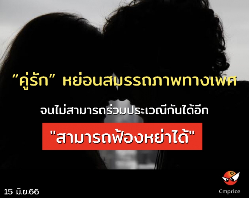 | • คู่รักหย่อนสมรรถภาพทางเพศ จนไม่สามารถร่วมประเวณีกันได้อีก "สามารถฟ้องหย่าได้" |