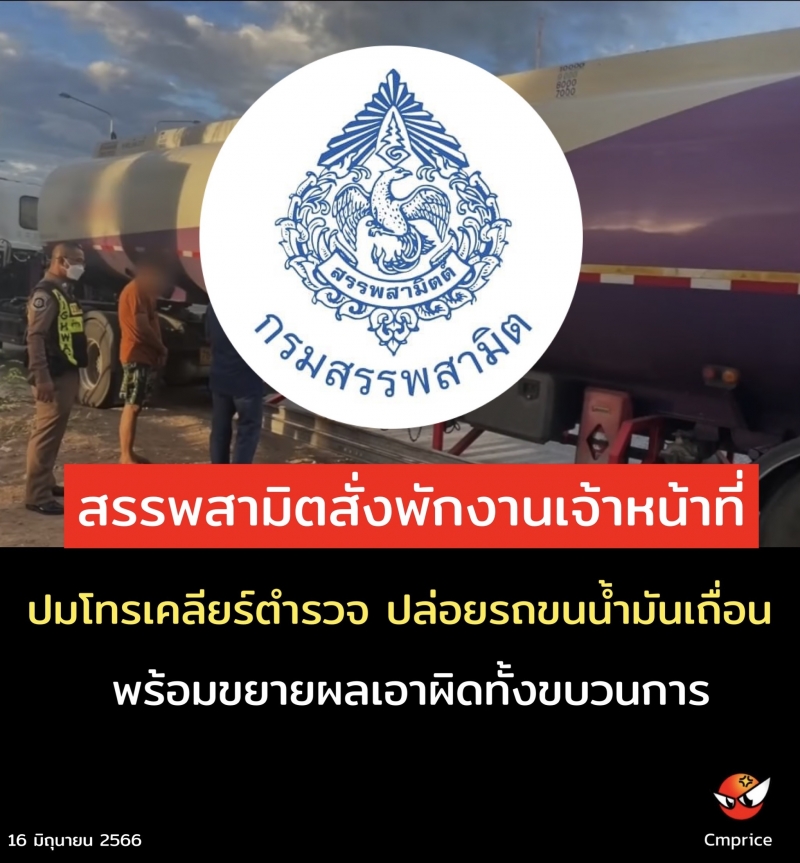 | • สรรพสามิตสั่งพักงานเจ้าหน้าที่ปมโทรเคลียร์ตำรวจ ปล่อยรถขนน้ำมันเถื่อนพร้อมขยายผลเอาผิดทั้งขบวนการ |