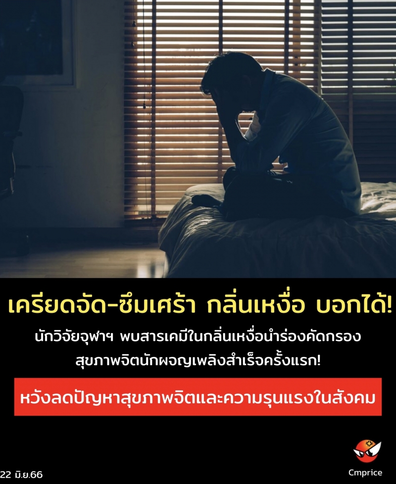 | • เครียดจัด-ซึมเศร้า กลิ่นเหงื่อ บอกได้! นักวิจัยจุฬาฯ พบสารเคมีในกลิ่นเหงื่อนำร่องคัดกรองสุขภาพจิตนักผจญเพลิงสำเร็จครั้งแรก! |