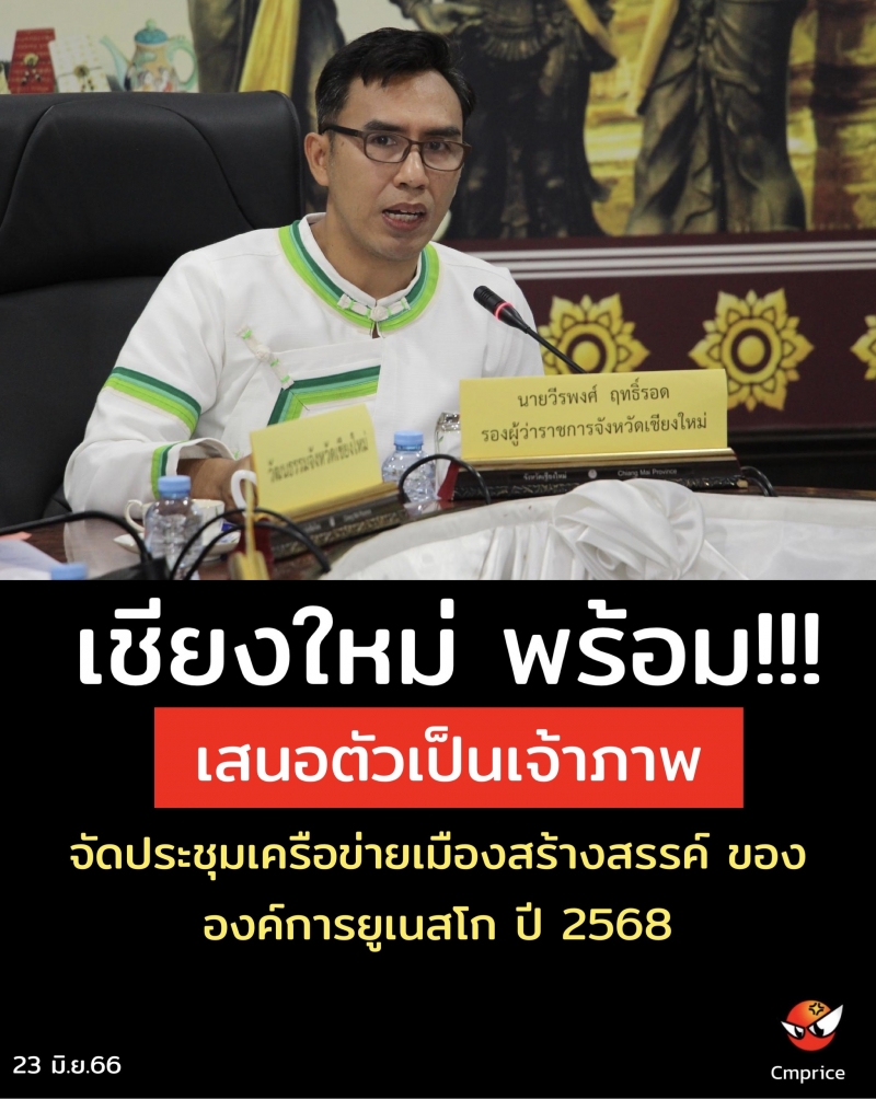 จังหวัดเชียงใหม่ พร้อมเสนอตัวเป็นตัวแทนประเทศไทย ในการเป็นเจ้าภาพจัดประชุมเครือข่ายเมืองสร้างสรรค์ ขององค์การยูเนสโก (UCCN Annual Conference) ครั้งที่ 17 ในปี 2568 สร้างโอกาสเผยแพร่วัฒนธรรมของประเทศไทยสู่สายตานานาชาติ