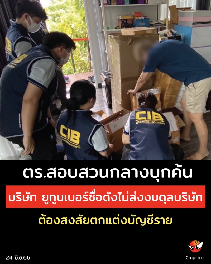 ตำรวจสอบสวนกลางบุกค้นบริษัท ยูทูบเบอร์ชื่อดังไม่ส่งงบดุลบริษัท ต้องสงสัยตกแต่งบัญชีราย