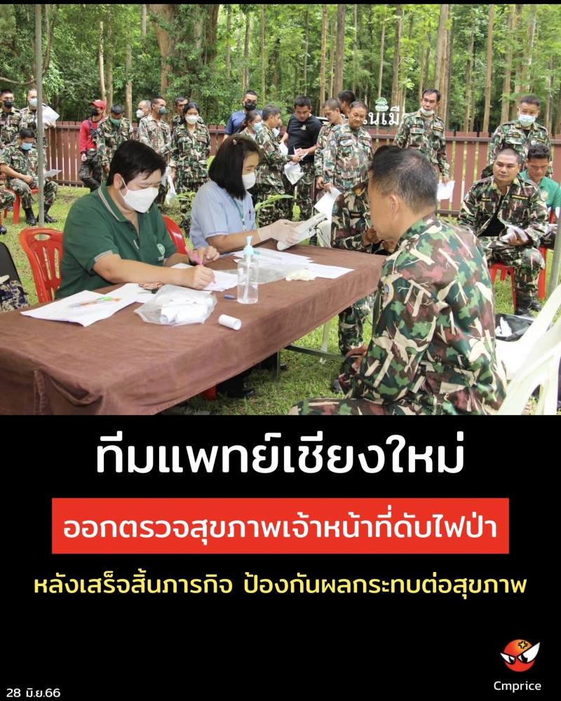 สำนักงานสาธารณสุขจังหวัดเชียงใหม่ กระจายทีมแพทย์ตรวจสุขภาพเจ้าหน้าที่ดับไฟป่า หลังเสร็จสิ้นการปฏิบัติภารกิจ เพื่อป้องกันผลกระทบต่อสุขภาพ ตามนโยบายผู้ว่าราชการจังหวัดเชียงใหม่
