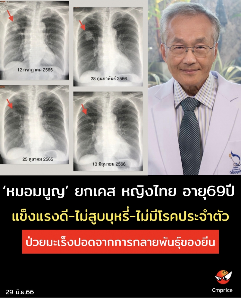 | • หมอมนูญ ยกเคส หญิงไทย อายุ69ปี แข็งแรงดี-ไม่สูบบุหรี่-ไม่มีโรคประจำตัว ป่วยเป็นมะเร็งปอดจากการกลายพันธุ์ของยีน |
