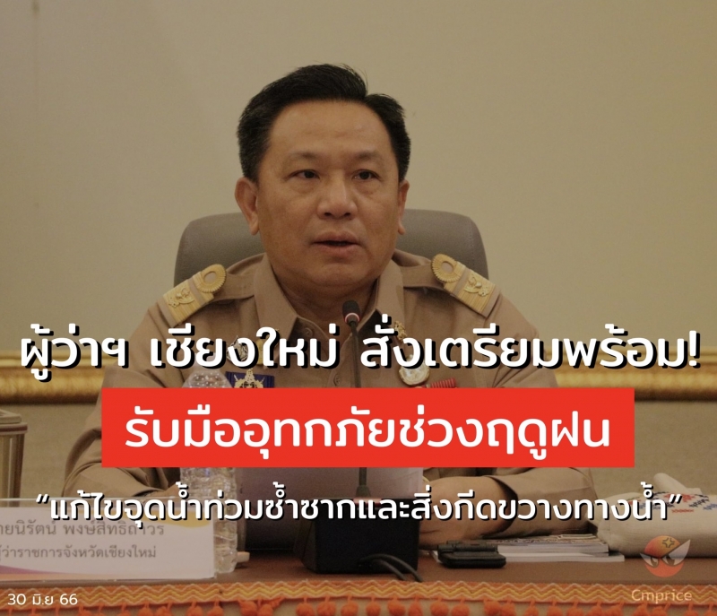 ผู้ว่าราชการจังหวัดเชียงใหม่ สั่งการหน่วยงานที่เกี่ยวข้อง เตรียมความพร้อมรับมืออุทกภัยในช่วงฤดูฝน เน้นย้ำ“แก้ไขจุดน้ำท่วมซ้ำซากและสิ่งกีดขวางทางน้ำ”